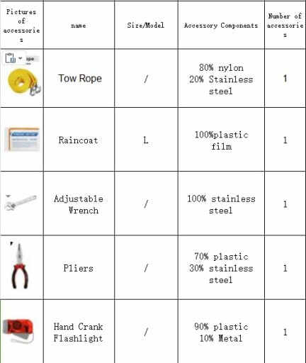| Jumper Cables | 9.8ft long and capable of jump-starting most vehicles |