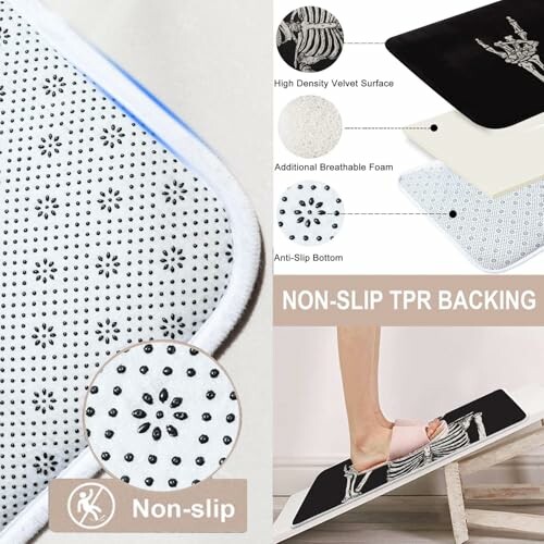 - Comfort and Safety: The anti-slip bathroom mats feature a soft polyurethane memory foam filling, providing comfort while standing. The PVC dots on the bottom prevent shifting and skidding, enhancing safety.