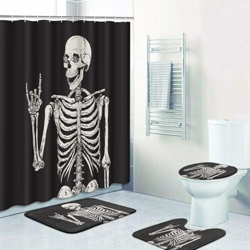 The ArtSocket Skeleton Bathroom Set is an exceptional choice for those who wish to add a quirky yet stylish flair to their bathroom space. This 4-piece set includes a shower curtain, a bath mat, a toilet lid cover, and a U-shaped rug, all designed with a captivating skeleton theme that is sure to impress guests and make bath time fun.