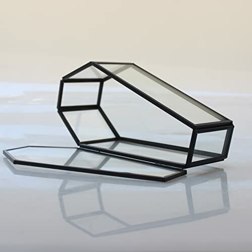 This gothic coffin terrarium is elegantly designed, featuring a transparent glass body complemented by a sleek black frame. Its dimensions of 3.5"D x 7.1"W x 2.5"H make it compact yet spacious enough to hold an array of items. Weighing in at just 0.7lb (315g), it is sturdy and durable, ensuring that your treasures are safely housed.